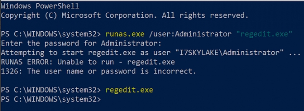 If we attempt to use credentials from a user that is not known by the system, then it would just fail. This is because starting a process on the local system as an unknown user obviously doesn't work. When we run runas.exe and give the correct credentials, then it spawns a local level process.