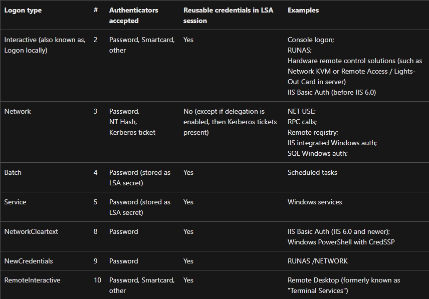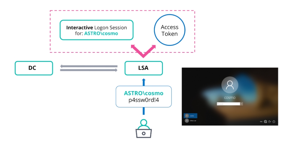 Interactive sessions are what happens when we login normally through our login page. The user credentials are cached within the memory of the LSA process, called the Local Security Authority Subsystem Service (LSASS). In specific, it is cached in lsass.exe. Cached credentials allow for Windows to provide for a Single Sign-On (SSO) service to users.