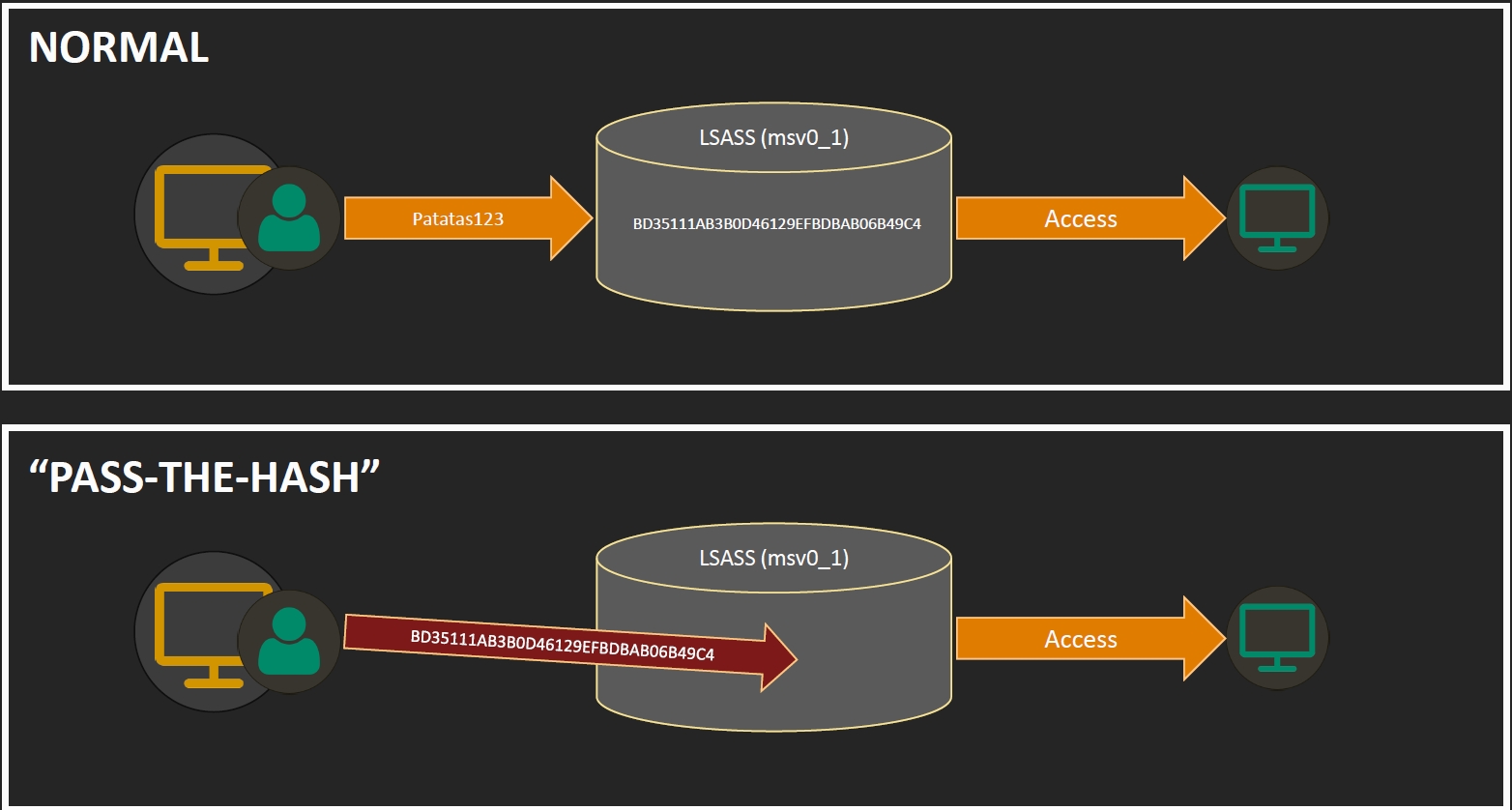 If we somehow retrieve a hash of a user, we cannot use Win32 APIs to do anything with them. Windows does not provide functionality to authenticate with users via NT hashes. As such, there are 2 broad categories of what we can do: