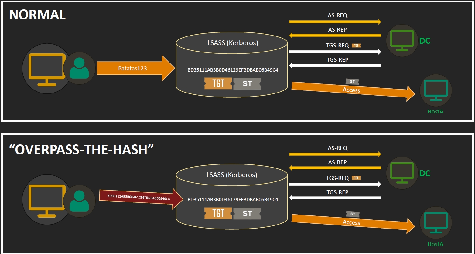 A similar thing happens when we use the Overpass The Hash exploit to request for tickets: