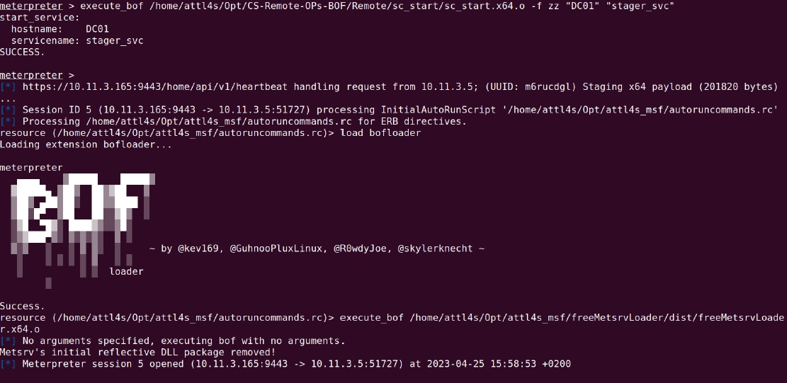 Using the sc.exe native tool, we can use our new security context to create services on the remote device to execute payloads like beacons. The sc_start.x64.o file can be used to start a service remotely.