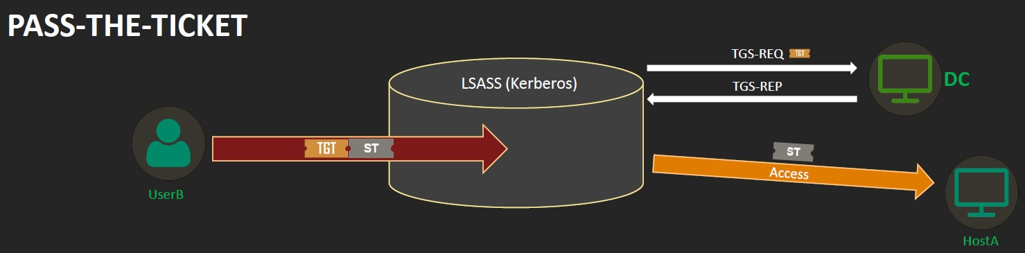 If we have the ticket from another user, we can importing the ticket into an attacker-controlled logon session and act on behalf of another user in the network.