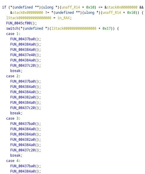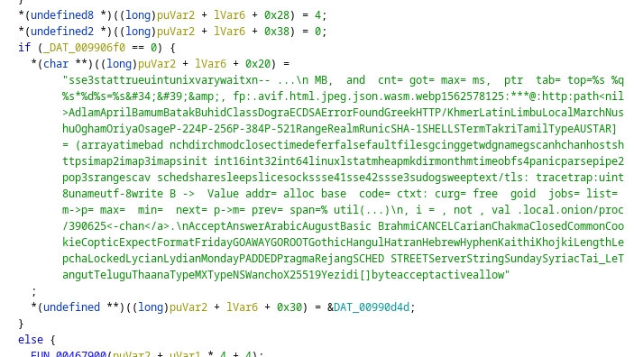 and took a look at the decompiled code. There were a crap ton of functions and I was a bit lazy, so I'm just gonna share the bits I found interesting.