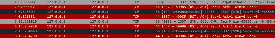 In Wireshark, the only thing I captured was some loopback interface traffic, so nothing much there.