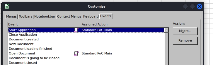 Afterwards, the code can be assigned to an event, such as the starting of Microsoft Office to read the document: