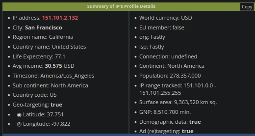 We can take this a step further, and instead start to use DNS on it to see where the server's from.