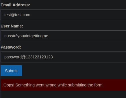 So this is another low-level scam from another credential harvesting website. When we key in some fake credentials, we get this: