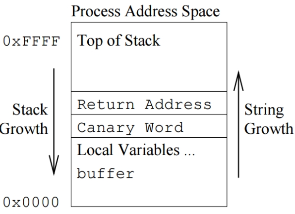 Stack canaries are used to detect a stack buffer overflow before execution of any malicious code can occur. This method works by placing a small integer, which value has been randomly chosen at the start of the program within the stack just before the stack return pointer.