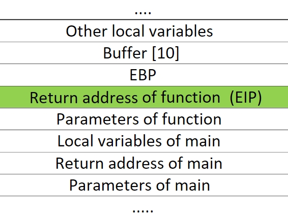 Should we overflow the buffer variable, this would overwrite the EBP and EIP. The return address of the function thus changes.