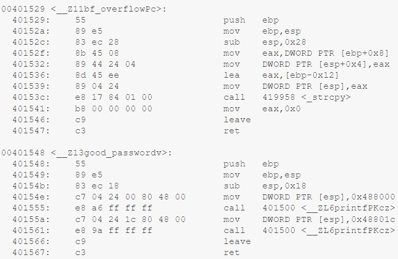So the good_password() function is at 0x00401548. This means that our payload would be 22 characters and the address of the function appended at the back.