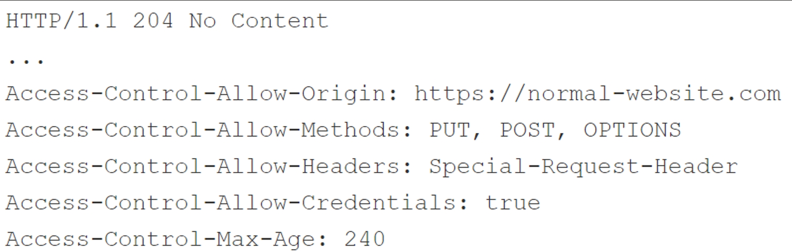 If the website has a Origin header of http://example.com and was allowed to access the credentials of a user, then this is included in the request: access-control-allow-credentials: true