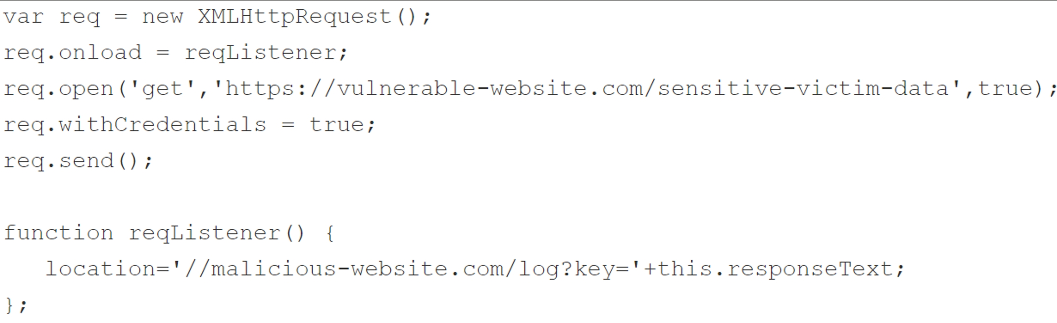 Cross-Origin Resource Sharing (CORS), is an exploit of a misconfigured website policy that dictates which external sources the website is allowed to interact with.