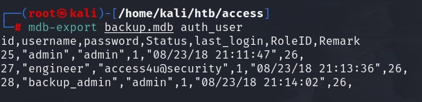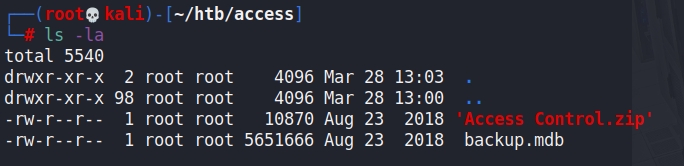 When analyzing the .mdb file, we can find out that this is a Microsoft Database file, which should contain passwords and other useful details to us.