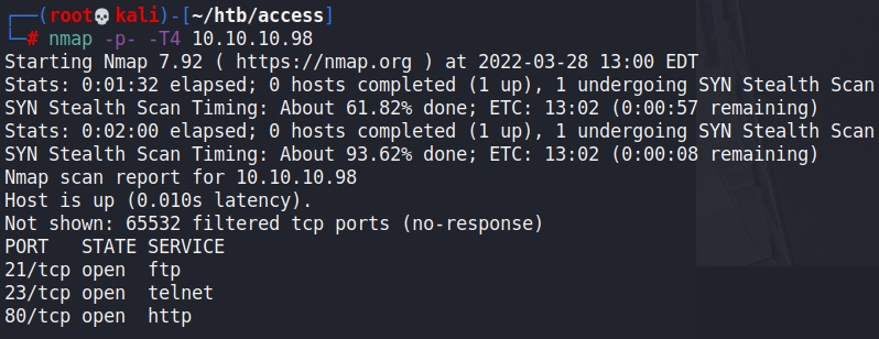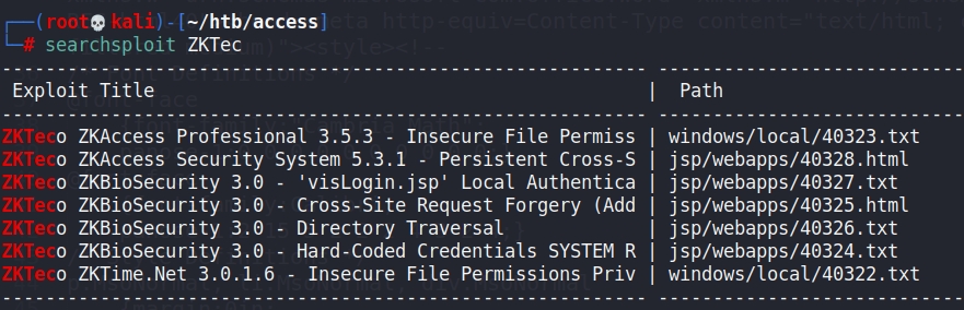 This is an Easy rated Windows machine. An FTP server with anonymous login has some Database files with Telnet credentials. Then, there's a public exploit for ZKTeco for PE.
