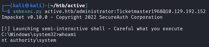 active/CIFS:445 Administrator CN=Group Policy Creator Owners,CN=Users,DC=active,DC=htb 2018-07-18 15:06:40.351723 2023-05-05 02:07:43.878117