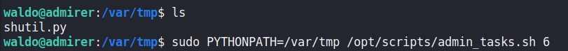 So to exploit this, we would simply need to change the PYTHONPATH variable to make the script import a malicious script that we have created. Because the module checks for shutil