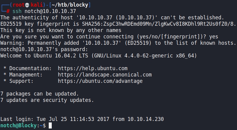 With the password and this username, we can SSH into the machine.