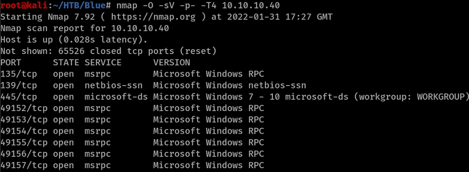 We can use the Metasploit module for EternalBlue to exploit this to gain a root shell as the administrator.