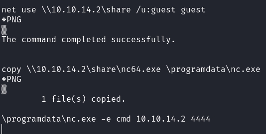 Afterwards, we can download nc.exe onto the machine via smbserver.py.