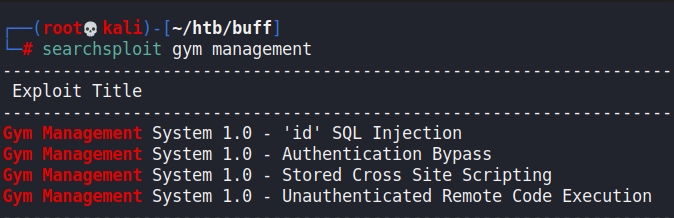 Then, we can search for exploits for this Gym Management Software 1.0.