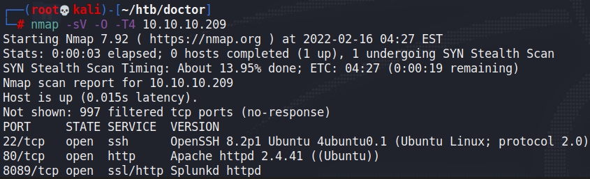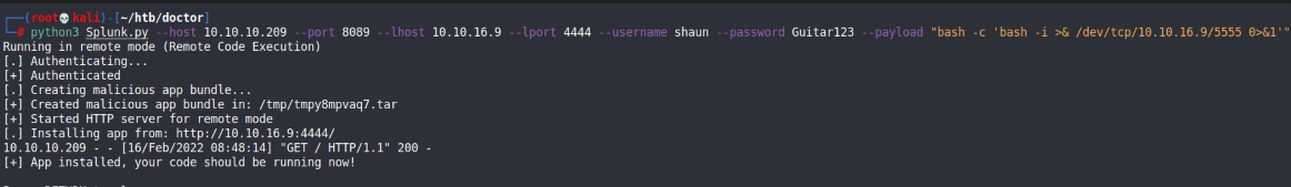 Normally, Splunk runs on port 8089, and we did find that port open on the machine earlier. Furthermore, this version of Splunk is vulnerable to an RCE exploit called SplunkWhisperer.