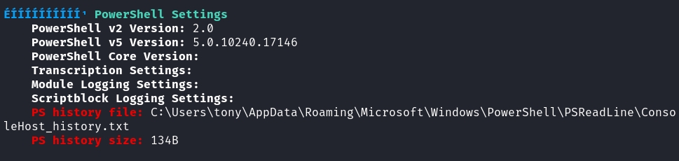 I ran a WinPEAS scan to enumerate for me. While reading the output, we can see that there's Powershell history files: