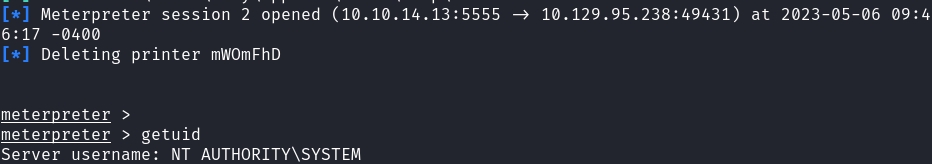 exploitAfterwards, we would get a shell as the SYSTEM user.