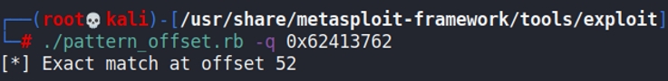 Afterwards, we need to fuzz the binary to find the number of junk characters required via pattern_offset.rb