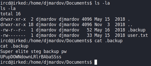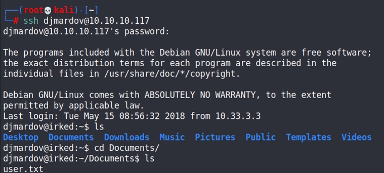 This part took me ages to find out. In the user djmardov directory, we find the user flag and some kind of key.