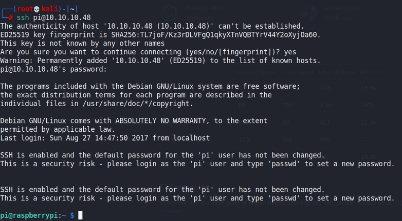 There's a login function, and I managed to login with default credentials of pi:raspberry. I also tried to SSH in as pi using these credentials, and it worked for some reason: