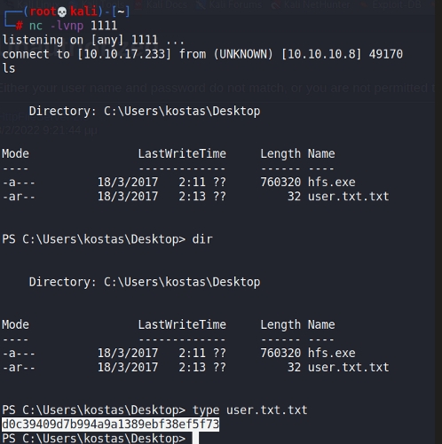 The version of HttpFileServer running here is vulnerable to RCE exploits.