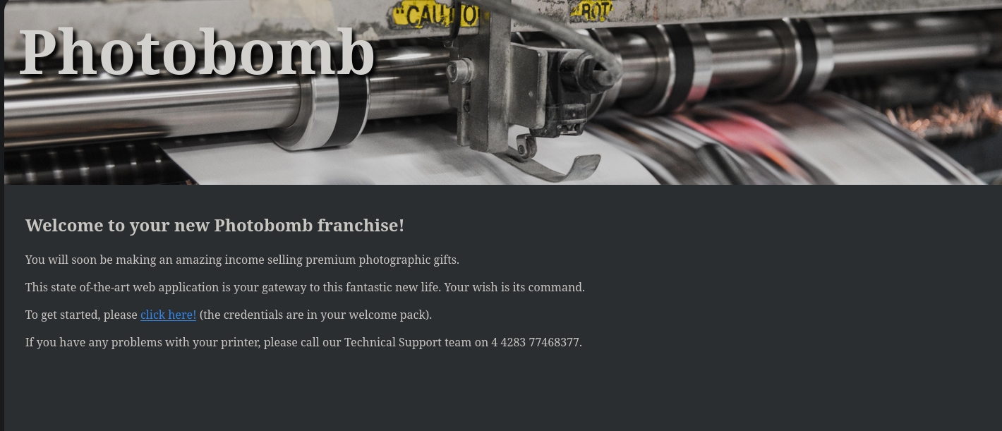 Since the page mentions there are credentials, we can view the page source to find photobomb.js containing some credentials: