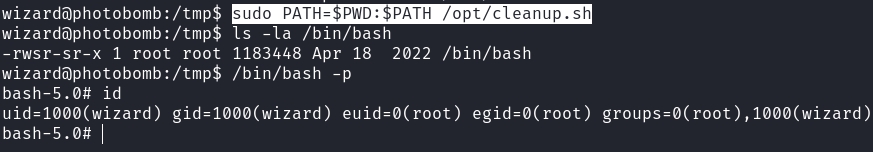 wizard@photobomb:/tmp$ cat /opt/cleanup.sh