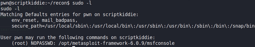 is that we can run shell commands in it. In short, we have root privileges just by doing sudo msfconsole