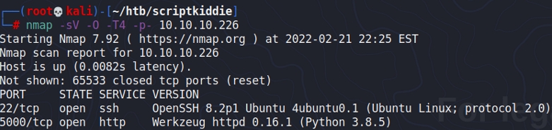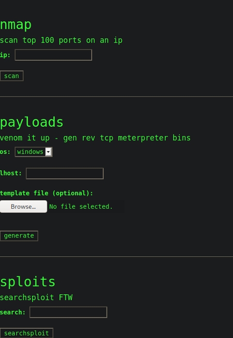 Port 5000 presented a website where we could use tools like nmap