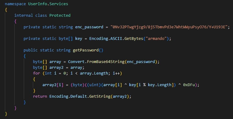 There's only one that was interesting, and it was the UserInfo.exe file. I took it back to my Windows VM and used dnSpy to open it.