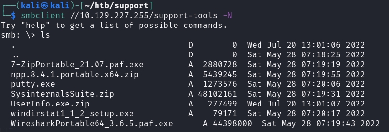 Viewing the support-tools share, we find that it contains multiple binaries.