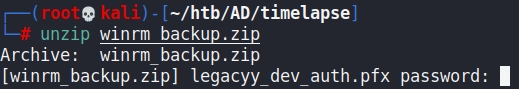 After unzipping the file, we can get a pfx file out. PFX files contains SSL certificates and private keys that could be useful for this machine.