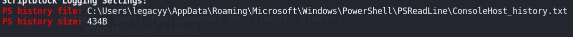 Running a WinPEAS, we can find that our current user has a Powershell HIstory present: