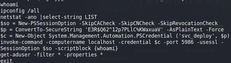 The PS History has commands used for remote Powershell-ing as another user called svc_deploy.