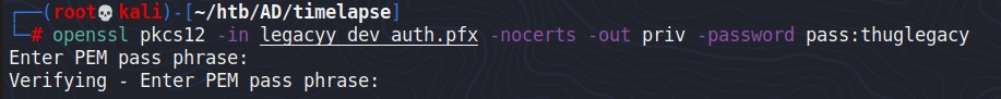 evil-winrm -i timelapse.htb -S -k priv -c legacyy_dev_auth.crtWe are then the legacyy user on the machine.