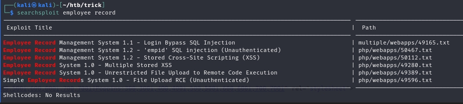 Initially, I assumed that there would be some kind of public exploit for this Employee Record system, and found quite a few.