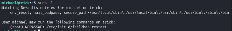 Additionally, we are allowed to run fail2ban restart as root using sudo.