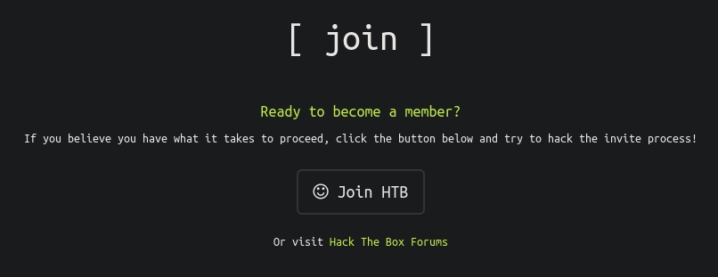 Anyways, we can attempt to register a user on this site and maybe find some sort of access control weakness. On the main page, there is a 'Join HTB' button, but it requires an invite code to access: