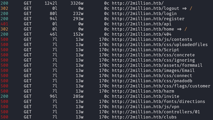 I didn't have an invite code, so we'll have to leave this for now. I also don't have any credentials to register a user, so the website's applications have limited use as of now. We can do a directory and subdomain scan for this site. I ran a feroxbuster directory scan and a wfuzz subdomain scan. The feroxbuster scan returned some interesting stuff: