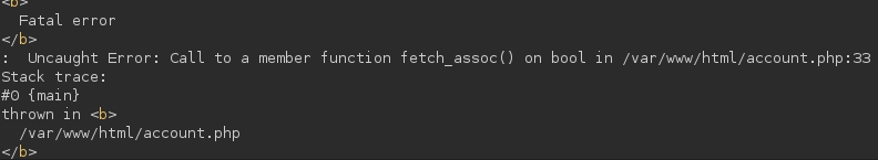 403 9l 28w 277c http://10.10.11.116/server-statusThe config.php endpoint presented an empty screen, which I think we have to look into after gaining a shell. Anyways, the account.php file displayed an SQL error when trying to view the player I registered.